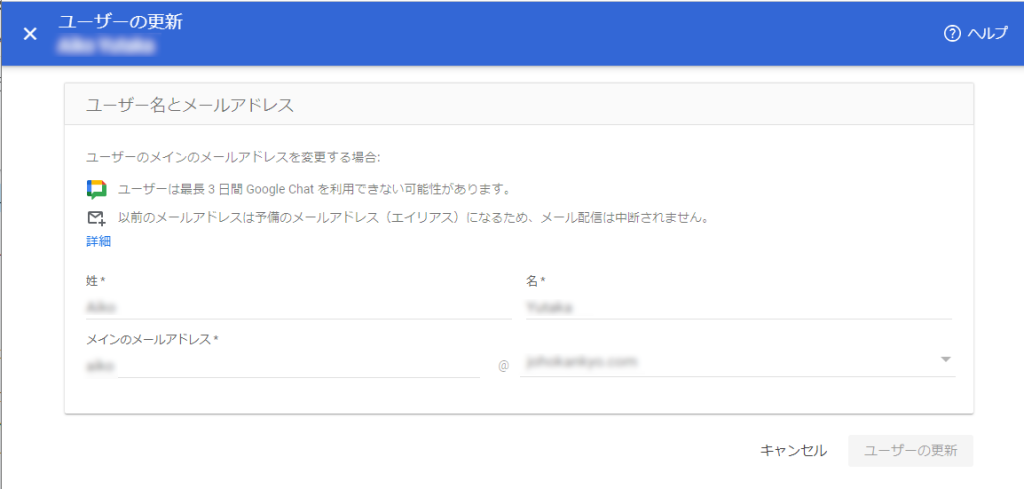 もう一つの今回不正アクセスされたメールアドレスについては、Google Workplaceのものであるため、メールアドレスそのものを変更しました。