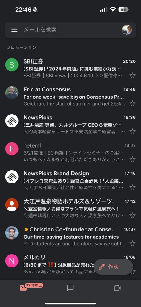 Gmailはリアルタイムでメールを同期します。これにより、パソコンで始めた作業をスマートフォンで続けることが可能で、その逆も可能です。