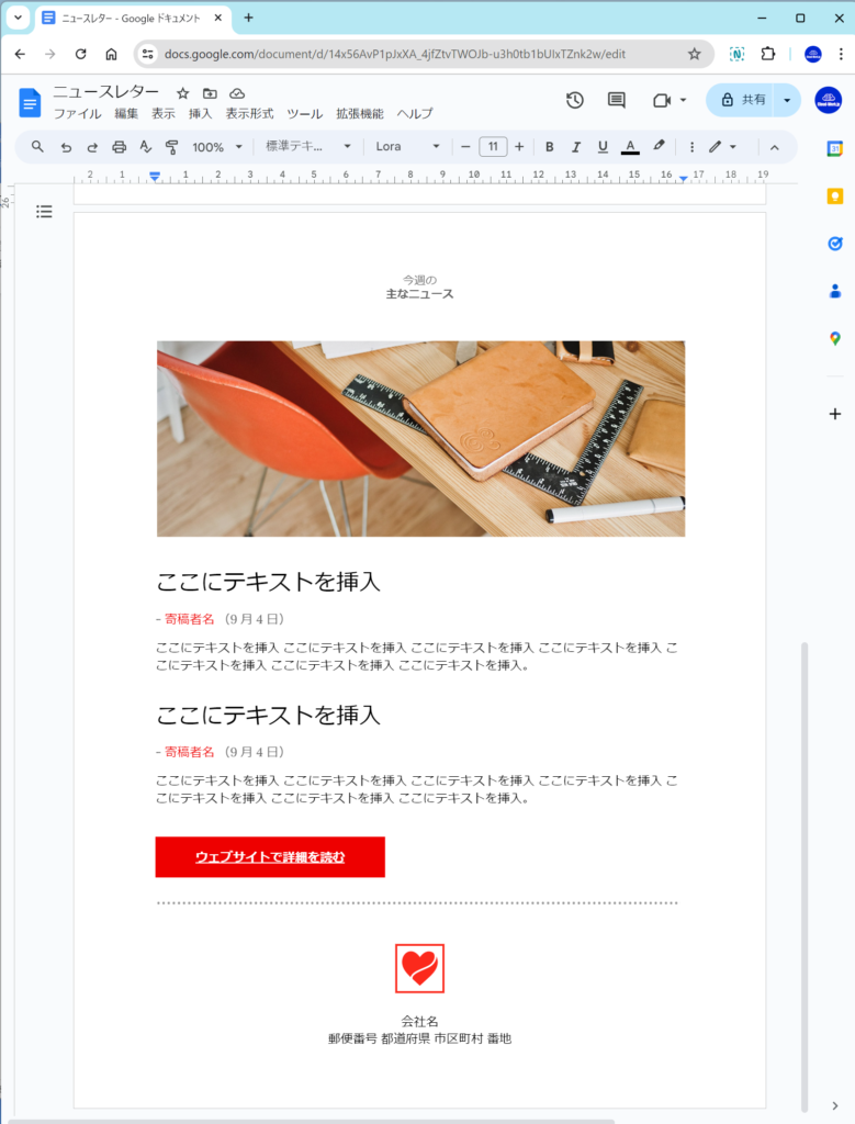 Googleドキュメントは、作成したファイルをPDF形式で出力できるので、文書の配布、ホームページでの公開資料などに利用できます。